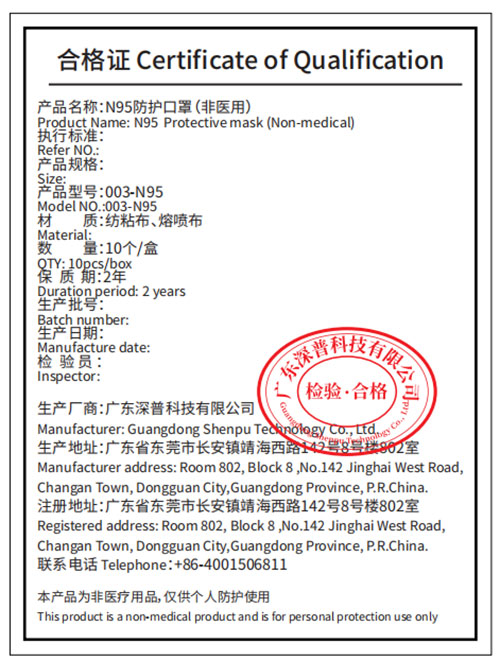 N95 حفاظتی نقاب - کیپ کی شکل ual ual کی سند کی تصدیق